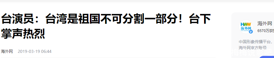 外洋网——《台演员:台湾是故国不可分割一部分!台下掌声热烈》——2019-03-19