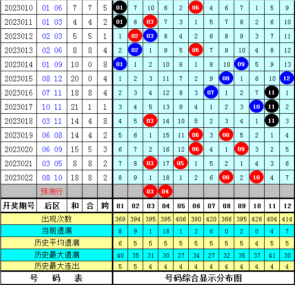 后区奖号分析:上期后区开出奖号08、10,为全偶组合,本期在意后区奇数号码回补,看好出现一奇一偶组合,讲理两码03 04。